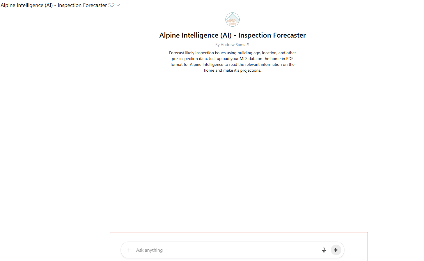 You should now see your file load into the GPT (it will take a few seconds). Once complete click the up arrow that appears to have your report run by Alpine Intelligence.